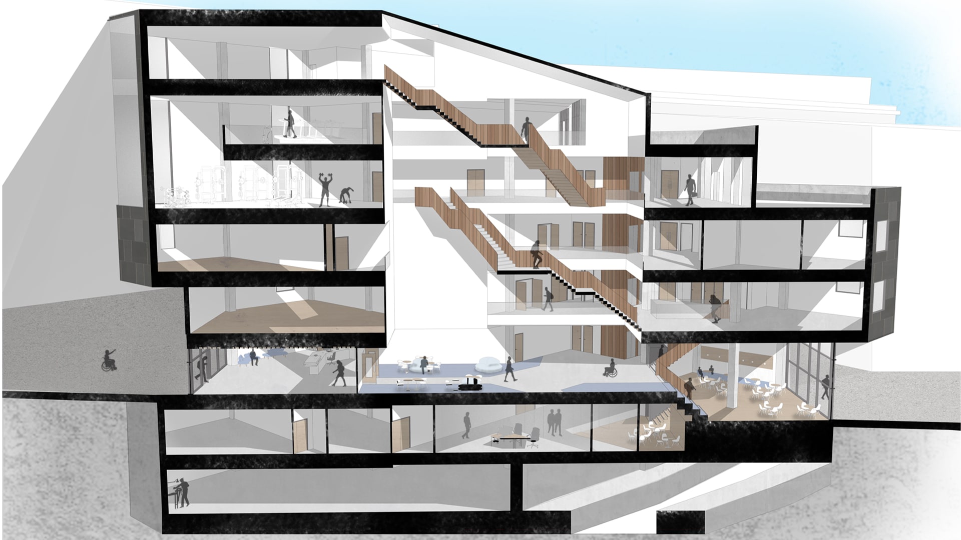 This building design is a research and development centre to manufacture and rehabilitate people who have newly fitted prosthetic limbs.