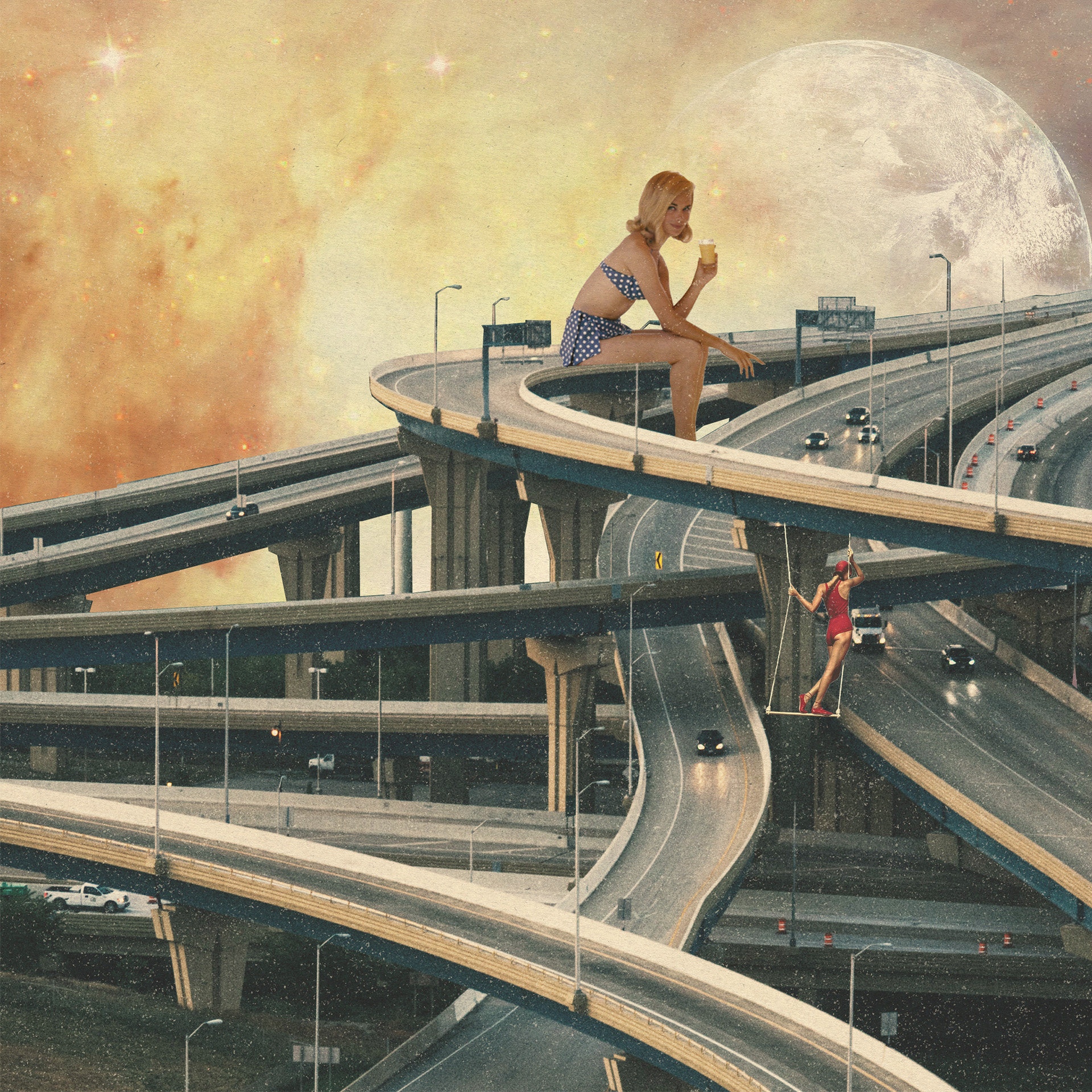 Lauren Whitaker is a Graphic Designer from Manchester who creates digital collages. She finds inspiration from humorous surrealist ideas, using found imagery of people and objects from different eras and combining these with images of nature, architecture, and interiors.