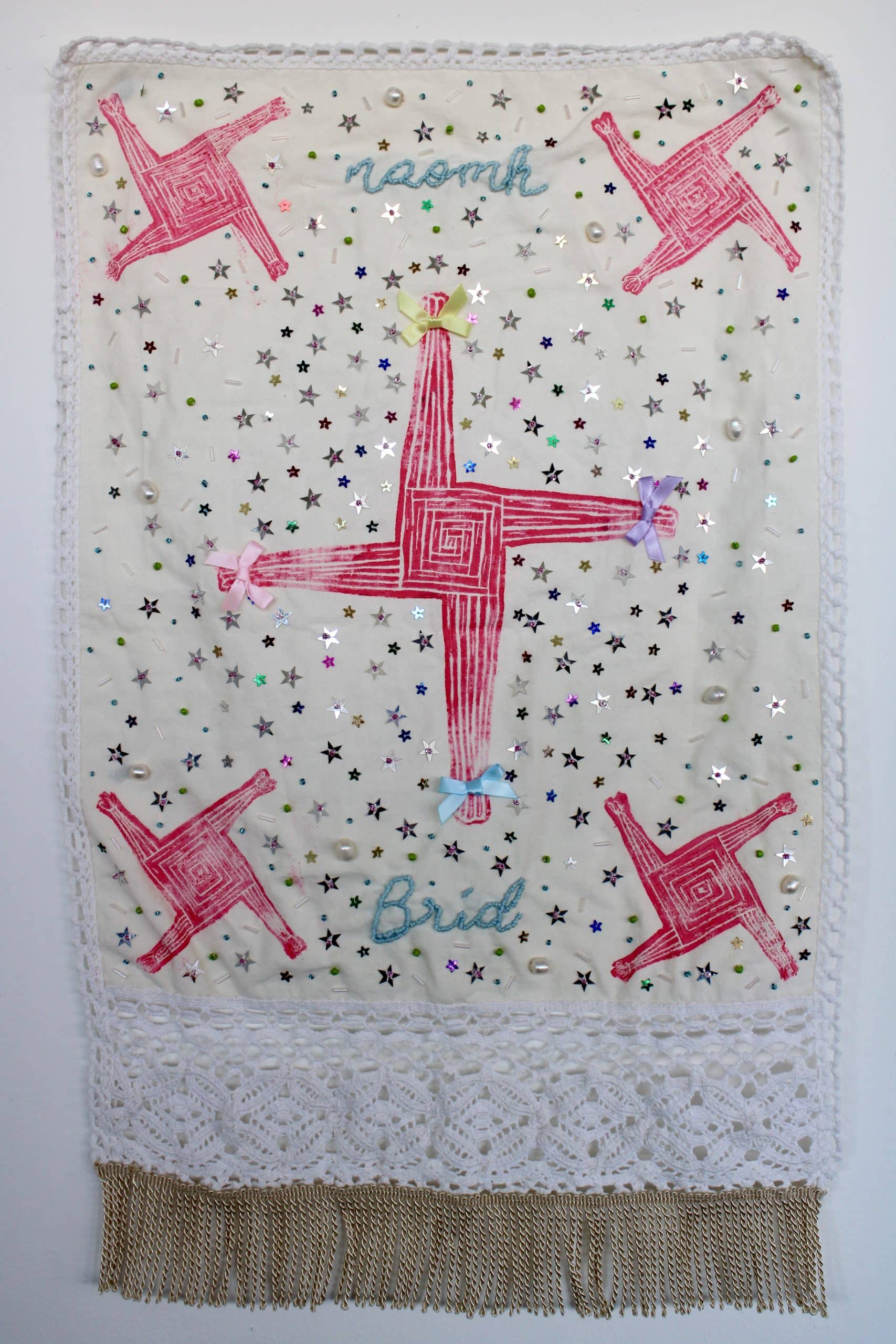 Exploring Ireland’s cultural landscape and oral traditions through embroidery and printmaking. By weaving manuscripts and stories passed through generations with my queer identity, I have fashioned a practice that would make my ancestors turn in their graves.