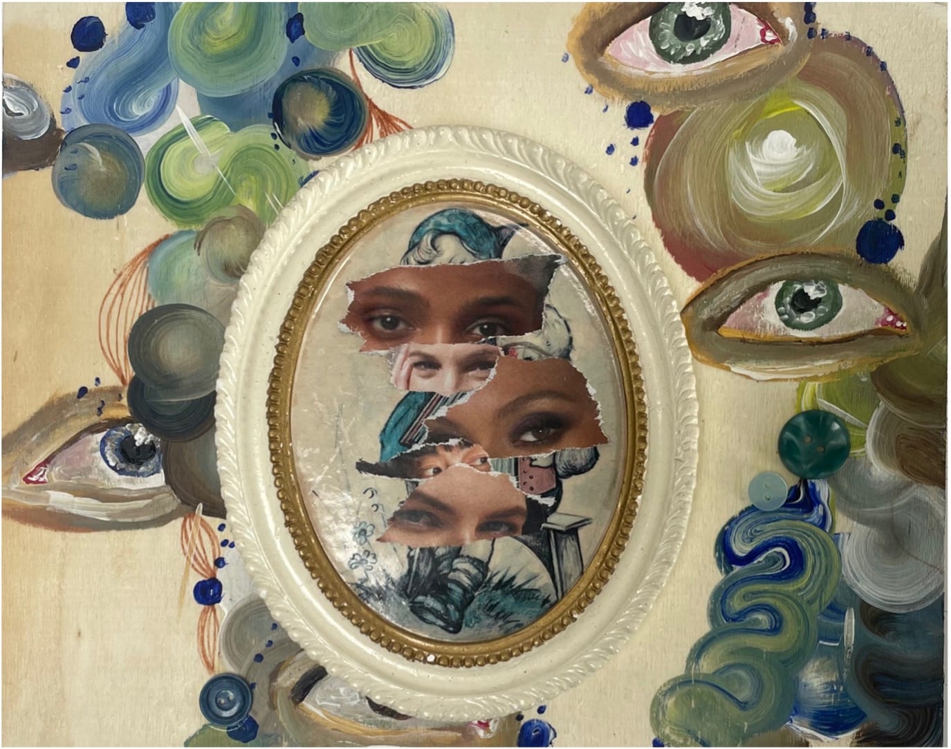 My practice delves into the use of mixed media and collage on found objects to present surrealist values and ‘dreamlike’
