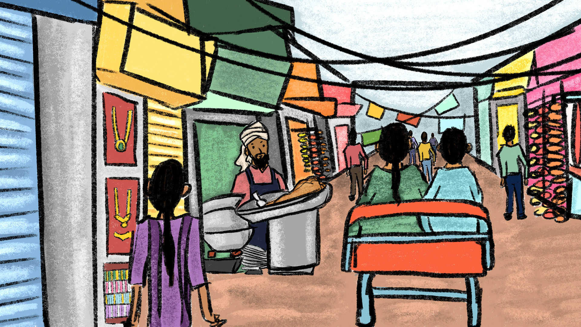 Khadija is an illustrator, exploring South Asian diaspora through zine making and paper engineering. Khadija pulls from her own experiences growing up as a Gujarati Muslim to create vibrant and playful zines so that others can experience her unique upbringing.